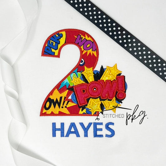 Superhero Pow Birthday Number Applique