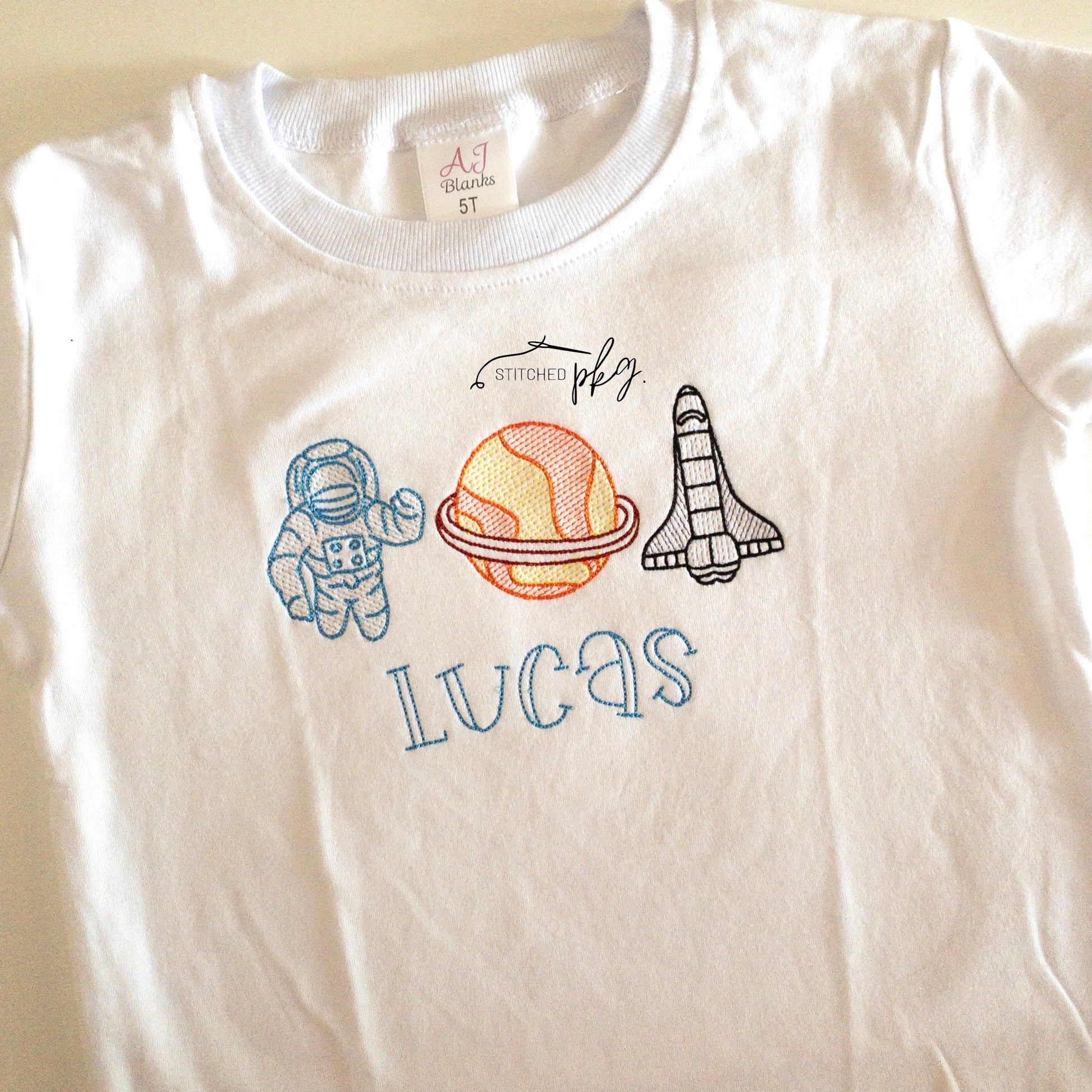 Space Lovers Unite for this cute space theme embroidered t-shirt!!