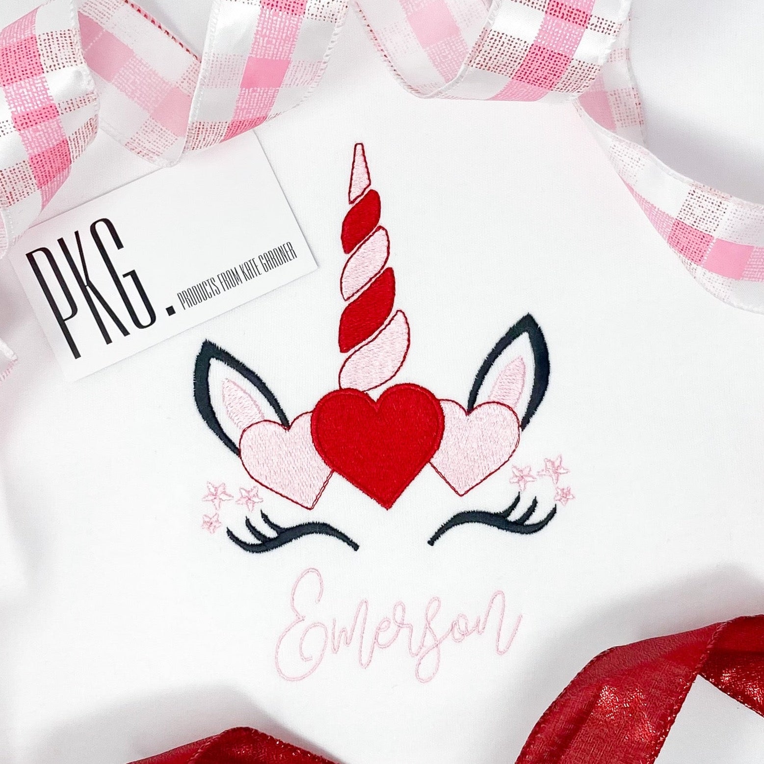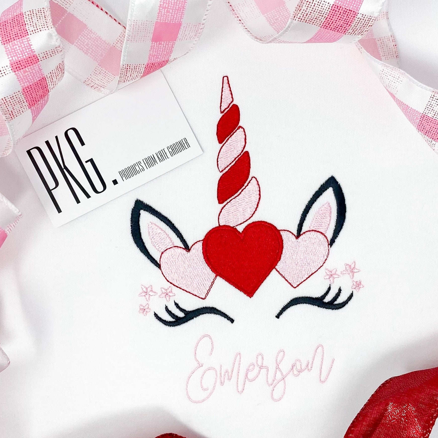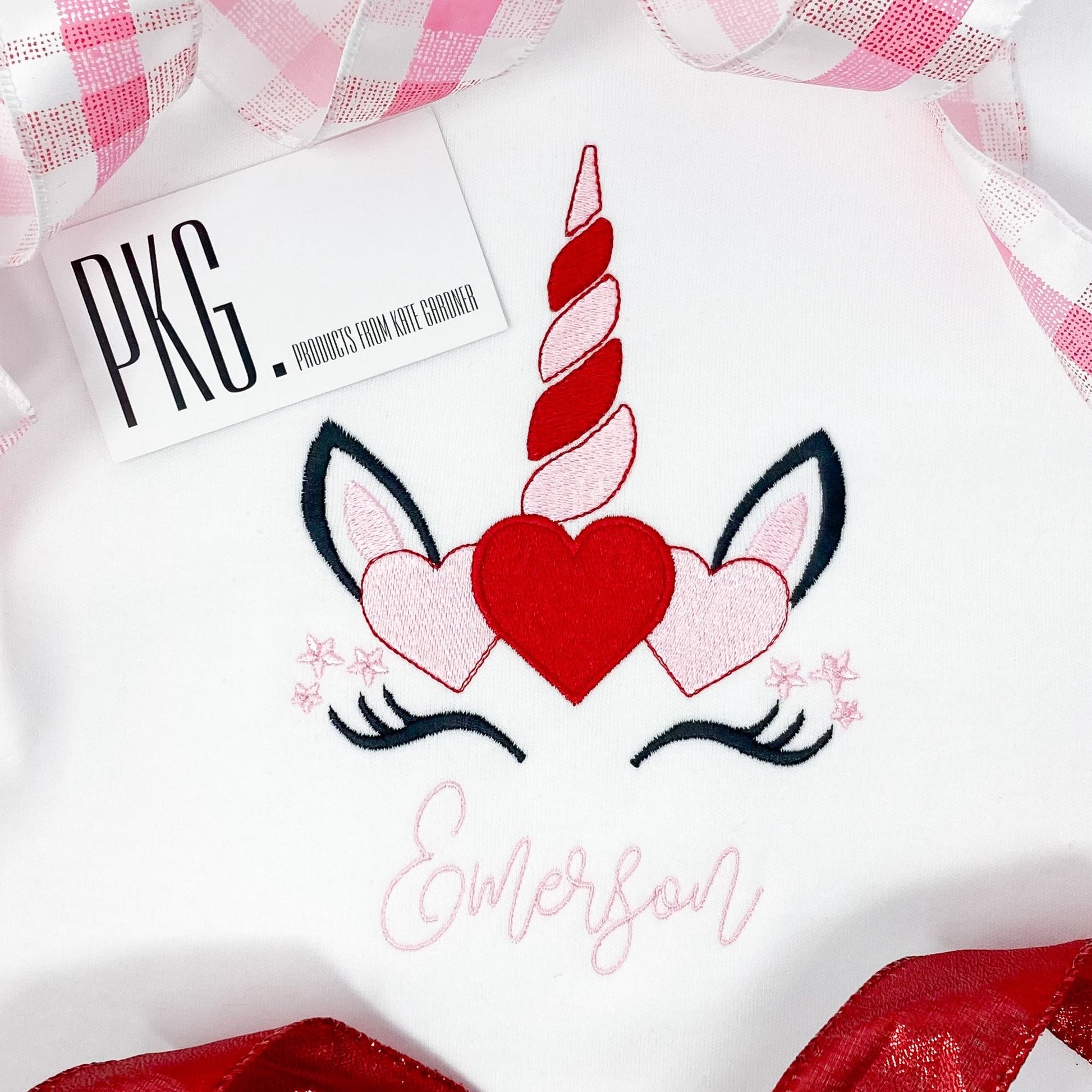 Designed with little ladies in mind who love unicorns!! Embroidered Unicorn with Heart Tiara and star accents personalized with their name underneath.