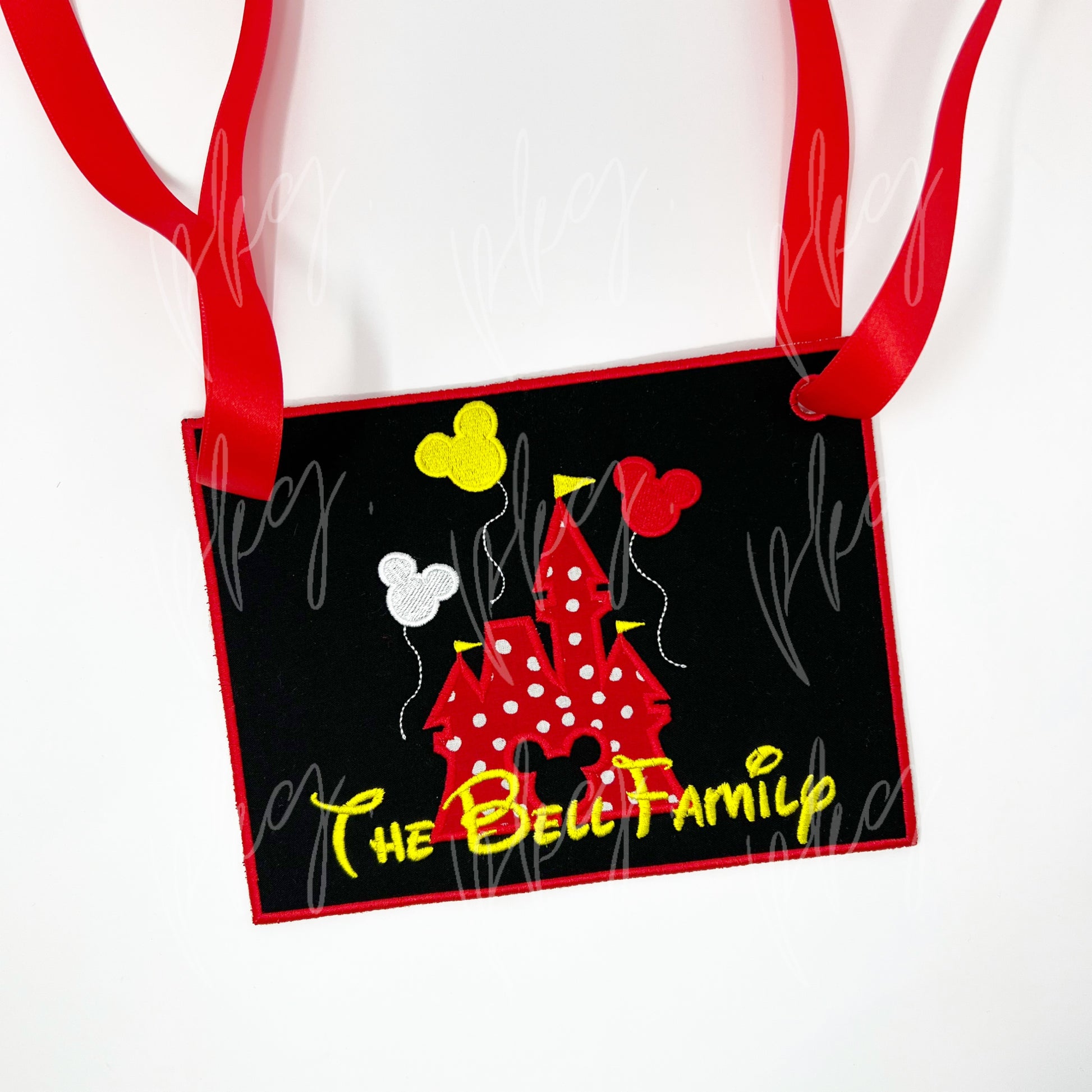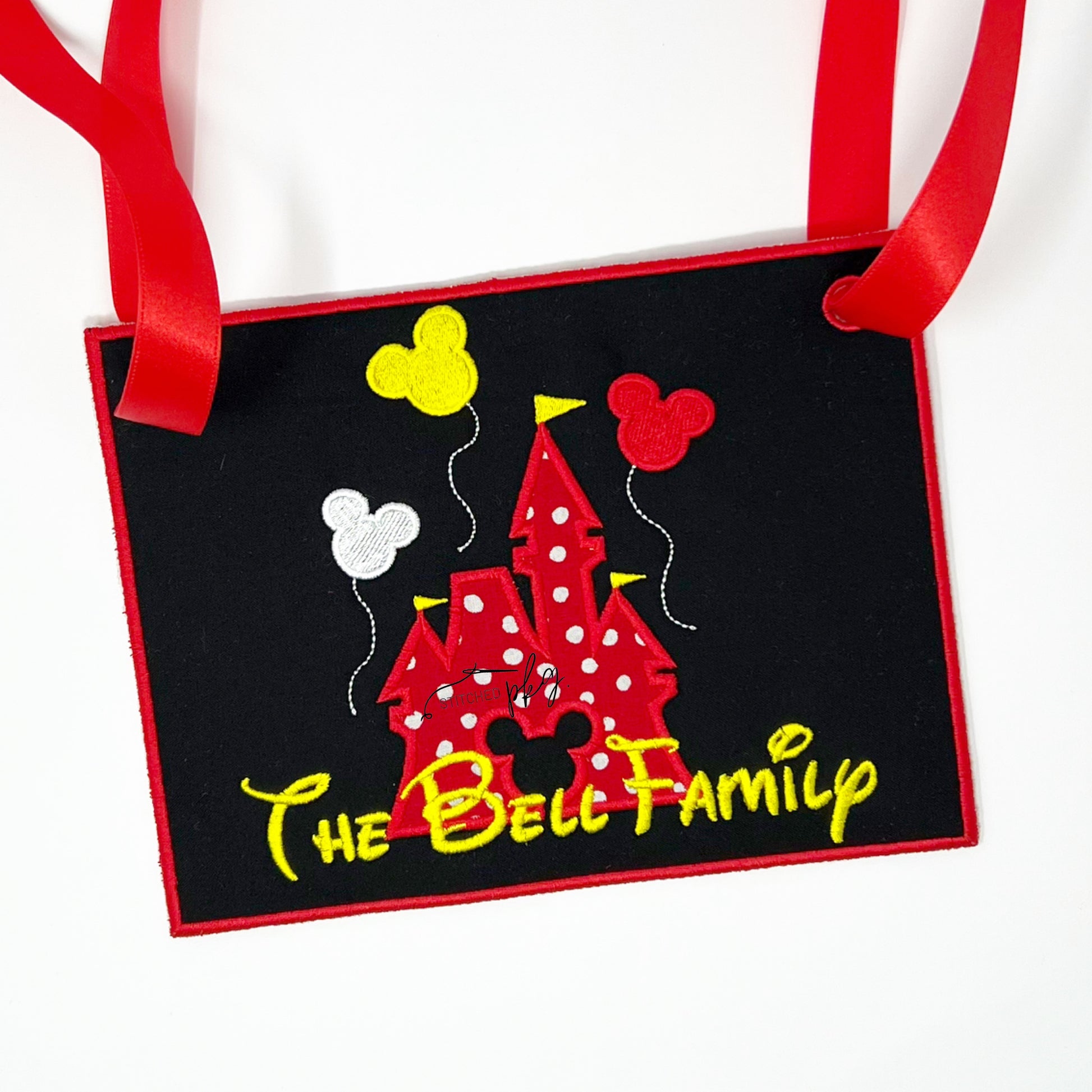 Stroller Tag to easily spot your stroller in the land of mouse and castles. Personalized to your family name! These are very sturdy. They're made with quilt batting and foam inside, so they are not flimsy but they're still lightweight and flexible to pack in a suitcase.