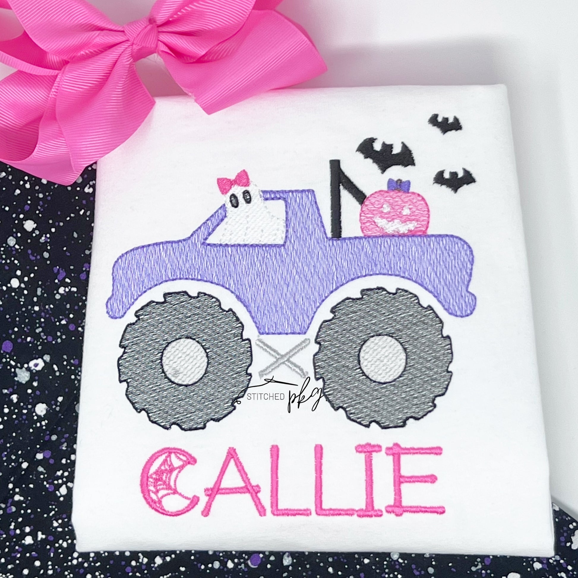 Girl's Halloween Monster Truck, complete with a ghost and bow!!