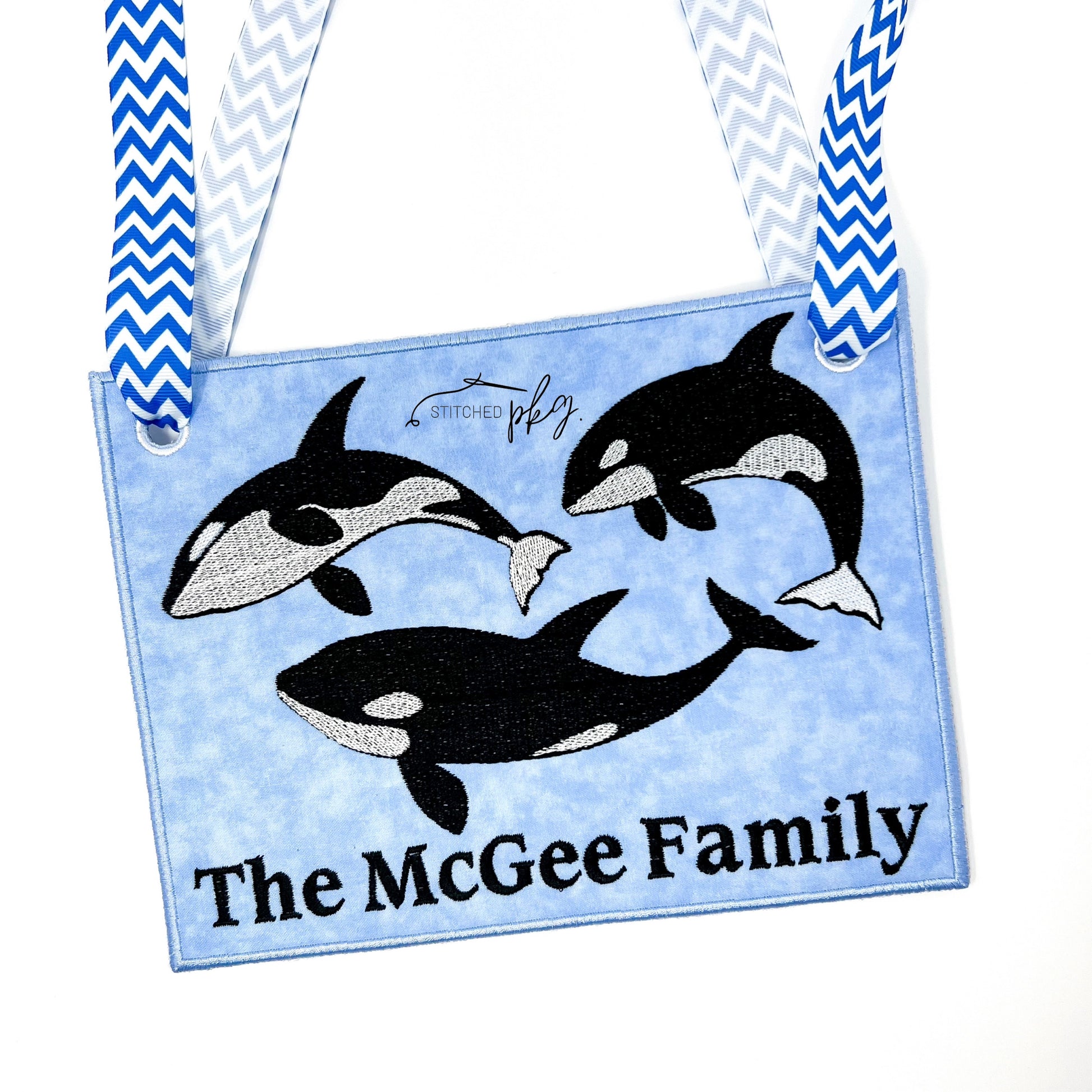 Stroller Tag to easily spot your stroller in the amusement park of whales and sea life. Personalized to your family name or your little ones name! These are very sturdy. They're made with quilt batting and foam inside, so they are not flimsy but they're still lightweight and easy to pack in your suitcase.
