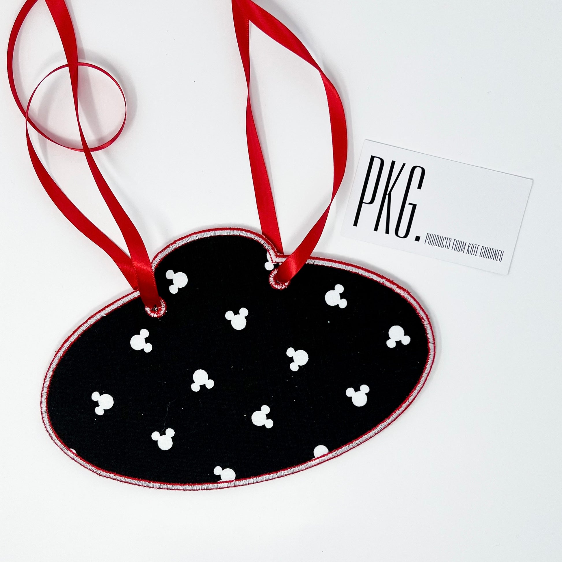 Stroller Tag to easily spot your stroller in the land of mouse and castles. Personalized with your family name! These are very sturdy. They're made with quilt batting and foam inside, so they are not flimsy but they're still lightweight and flexible to pack in a suitcase.