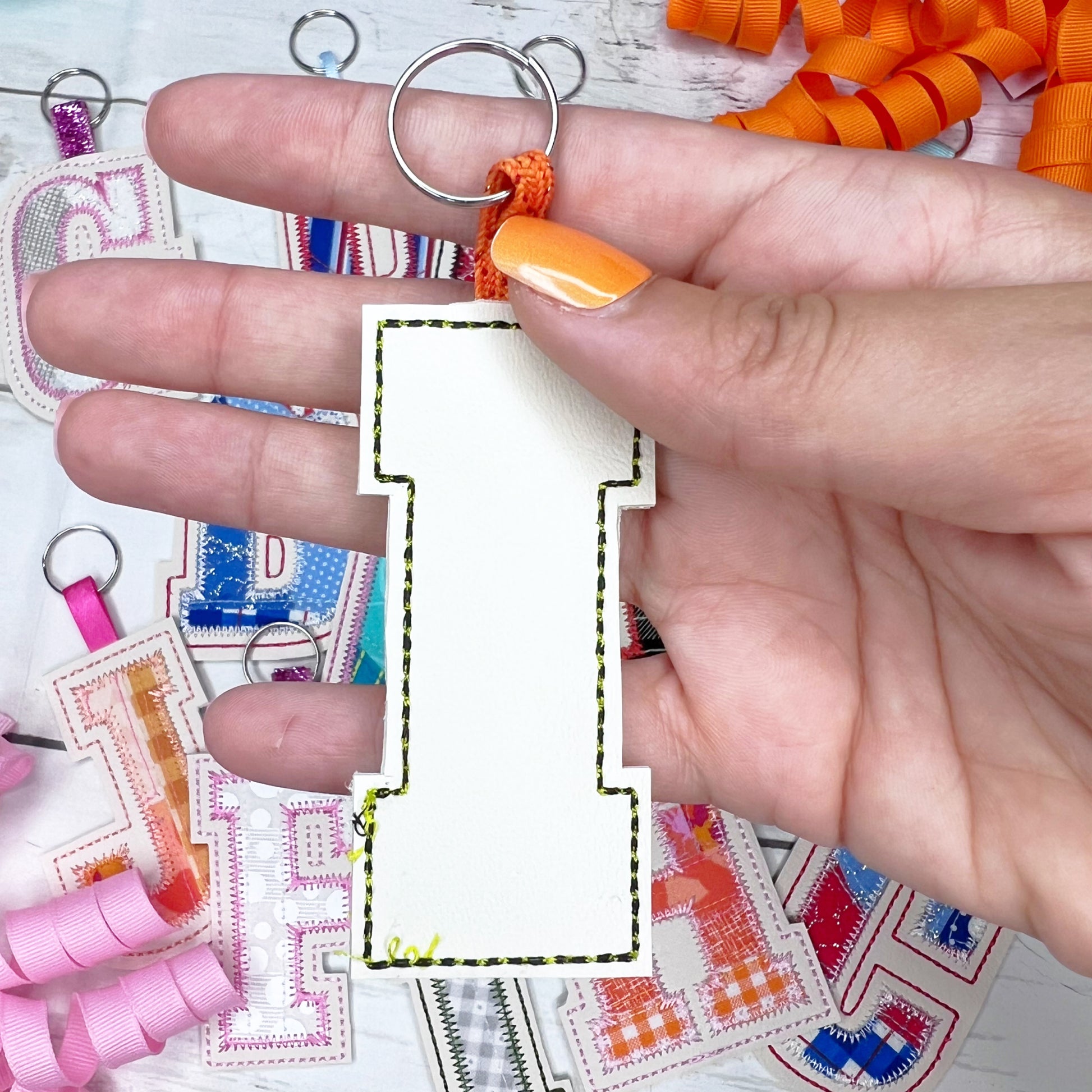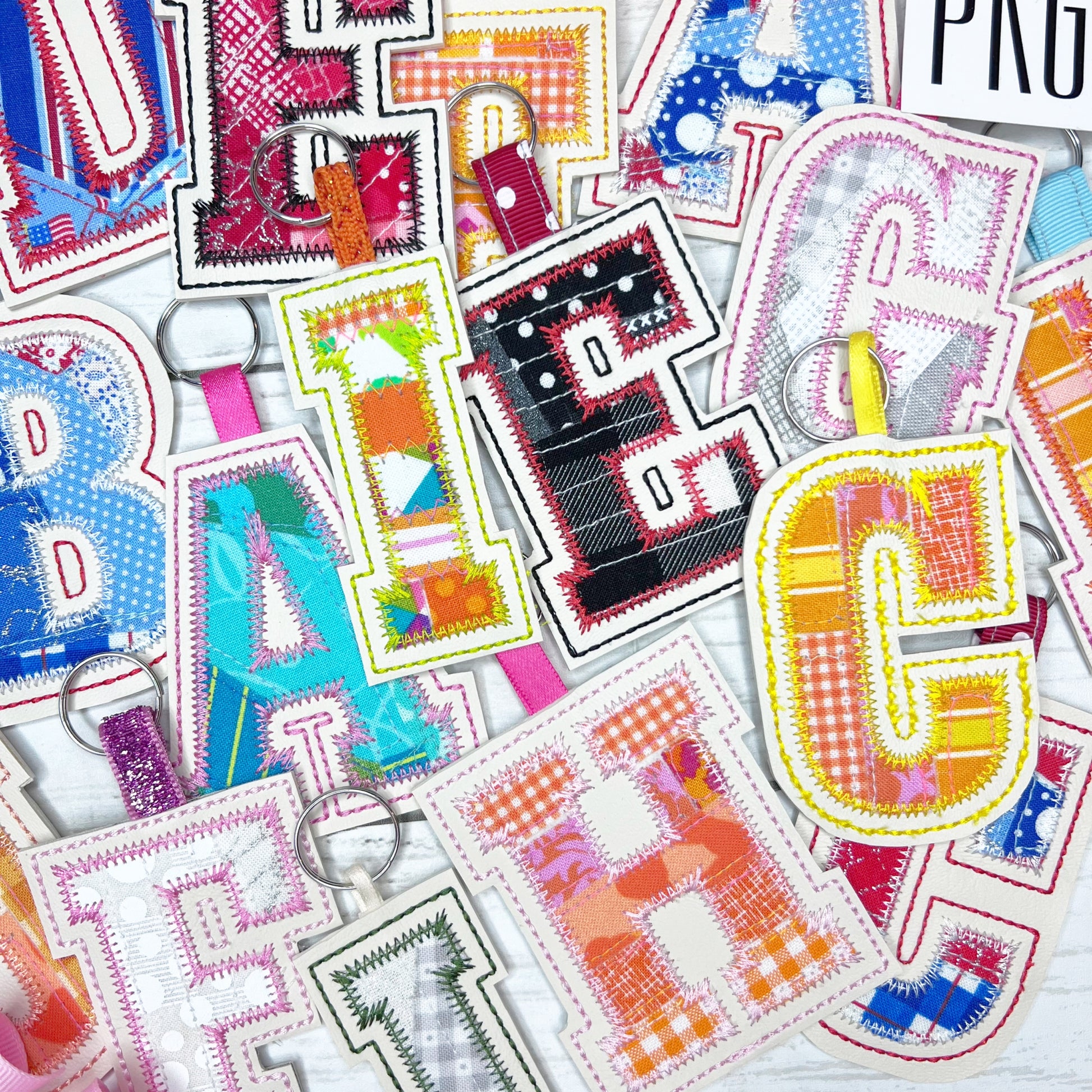 Choose your letter! These are made with fabric scraps stitched together then appliquéd onto upholstery vinyl front and back. The letters are 3" tall. These are a labor of love, but I absolutely love making them!