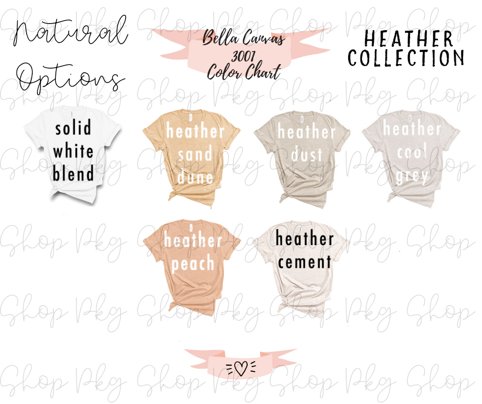 In the personalization box, enter the color from the color charts in the photos for the tee you'd like for this design! Natural or Bleached. Some shirt colors need to be bleached, some light colors can be used natural. Process is Sublimation. The design will stay for the life of the shirt, no cracking, peeling or fading over time!